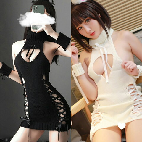 【楽天1位獲得】【あす楽】セクシー コスプレ 童貞を殺すセーター セクシー服 セーター エッチ 胸あき 背中あき セクシー レディース リボン アミ ニット ハイネック タートルネック ノースリーブ 衣装 配信 かわいい 高品質 豪華 5点セット