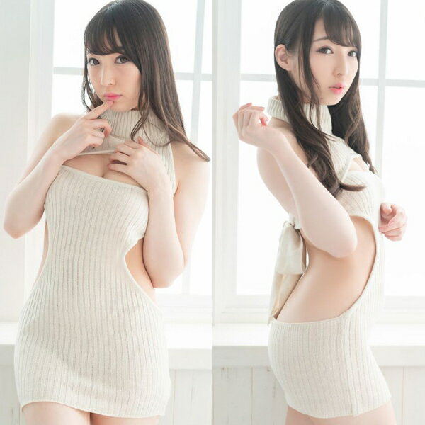 楽天スーパーSALE 例のニット 胸開きタートルネック アイボリー セクシー コスプレ 宅コス ニット セーター 可愛い エロい 大胆 ワンピース ルームウェア 部屋着 衣装 コスチューム 過激 大人 ランジェリー ドレス ハロウィン 仮装
